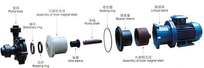 CQF型工程塑料磁力泵以靜密封替代動(dòng)密封,使泵的過流部件處于徹底密封狀況,徹底解決了其它泵的機(jī)械密封無法防止的跑,冒,滴之蔽病,磁力泵選用耐腐蝕,鋼玉陶磁,增強(qiáng)聚丙稀作為制造資料,因此它具有杰出的抗腐蝕功能,并可以使實(shí)運(yùn)送介質(zhì)免受污染。