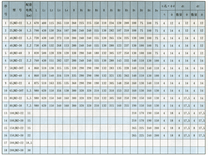 二、JMZ型不銹鋼自吸泵性能參數(shù)