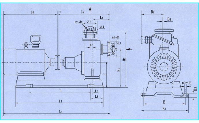ZW型自吸式無堵塞排污泵外形安裝尺寸