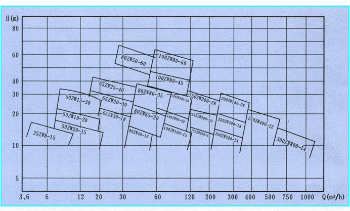 ZW型自吸式無堵塞排污泵曲線圖譜